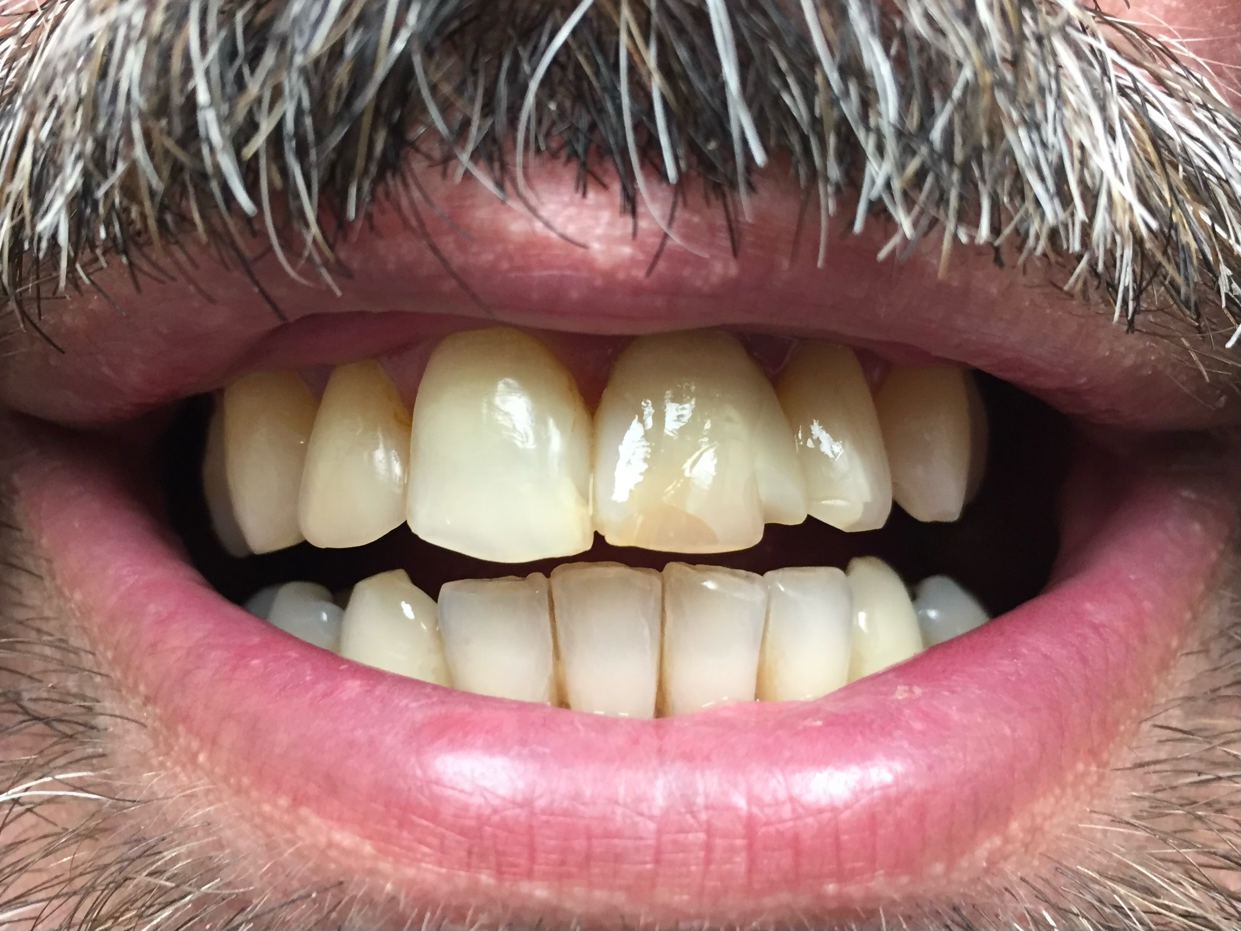Patient presented very unhappy with the large white fillings that were breaking down.
