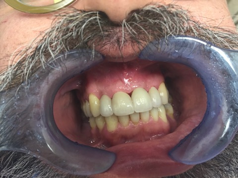 Patient was restored with full coverage Porcelain Jacket Crowns and left very happy with esthetics. "Thank you, Doctor! This was money very well spent." |